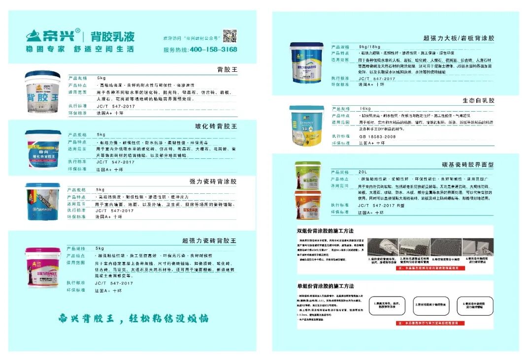 产品描述:帝兴背胶王为单组份水性产品,能够吸收基层与瓷砖微小形变产生的应力并且能够保证瓷砖粘结材料。产品特点:使用便捷,防止……