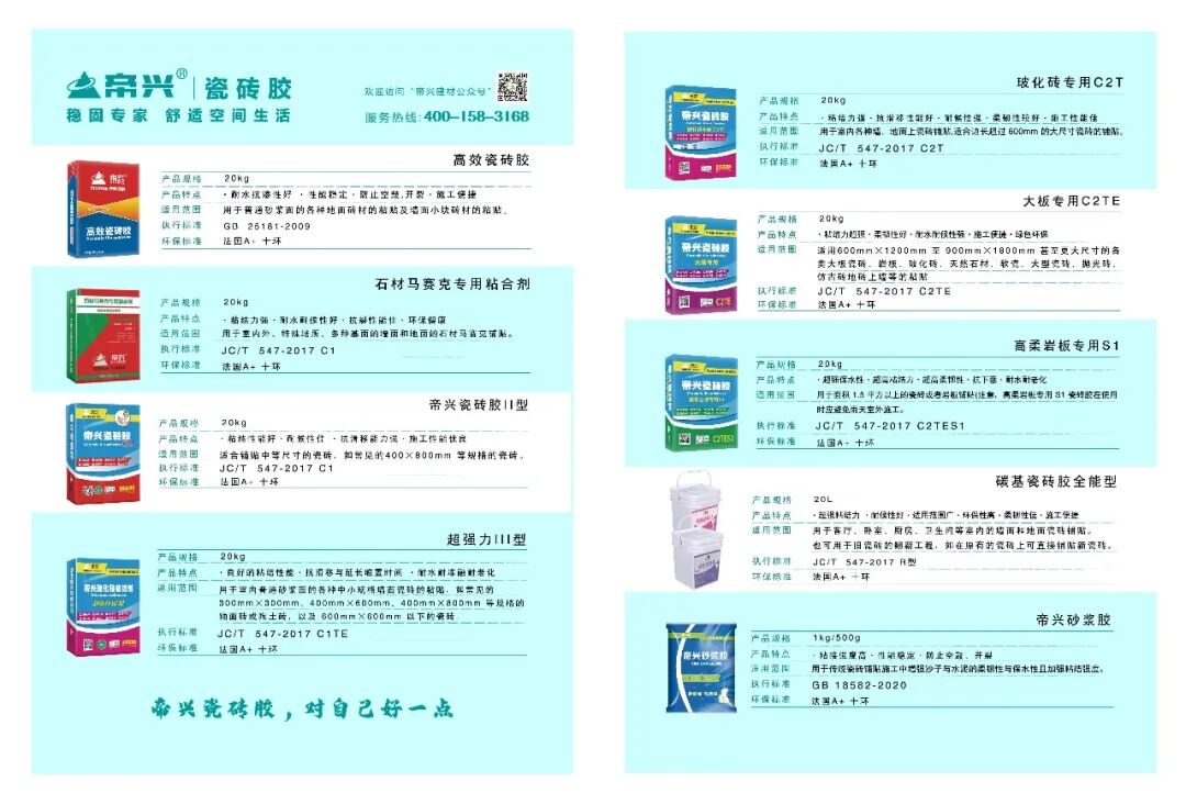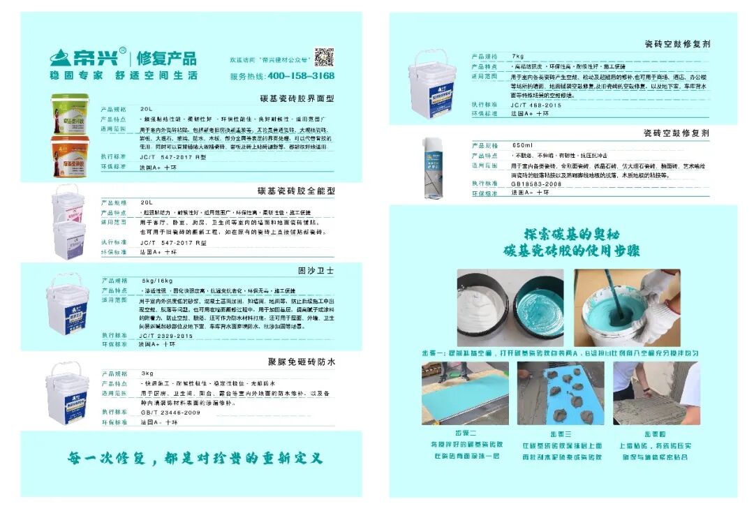 产品描述:帝兴玻化砖背胶王为单组分绿色产品,是一种用于解决用普通水泥砂浆铺贴时饰面砖粘结不牢、空鼓,开裂、脱落、性能不稳定……