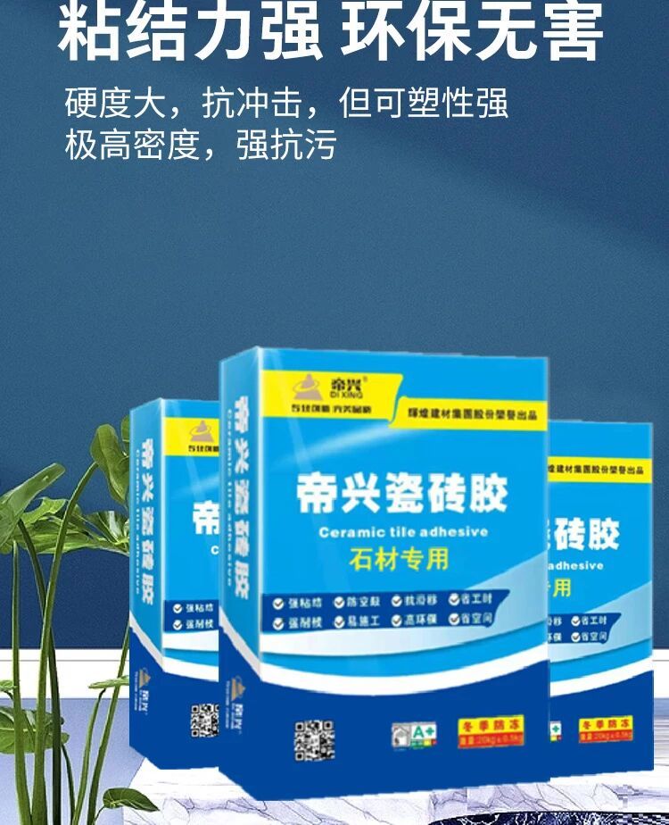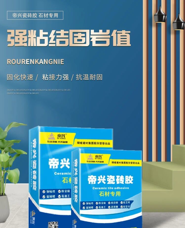 产品描述:帝兴玻化砖背胶王为单组分绿色产品,是一种用于解决用普通水泥砂浆铺贴时饰面砖粘结不牢、空鼓,开裂、脱落、性能不稳定……