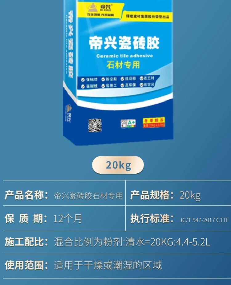 帝兴大板岩板专用瓷砖胶,是一款专门为超大尺寸瓷板设计的聚合物增强水泥基胶粘剂,适用于超大尺寸的瓷砖。